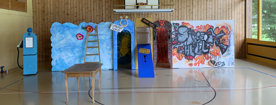 Jahresthema 2024/25 Bau Bühnenbild Sommertheater, Auführung Sommertheater "Mitenang statt gägenang"
